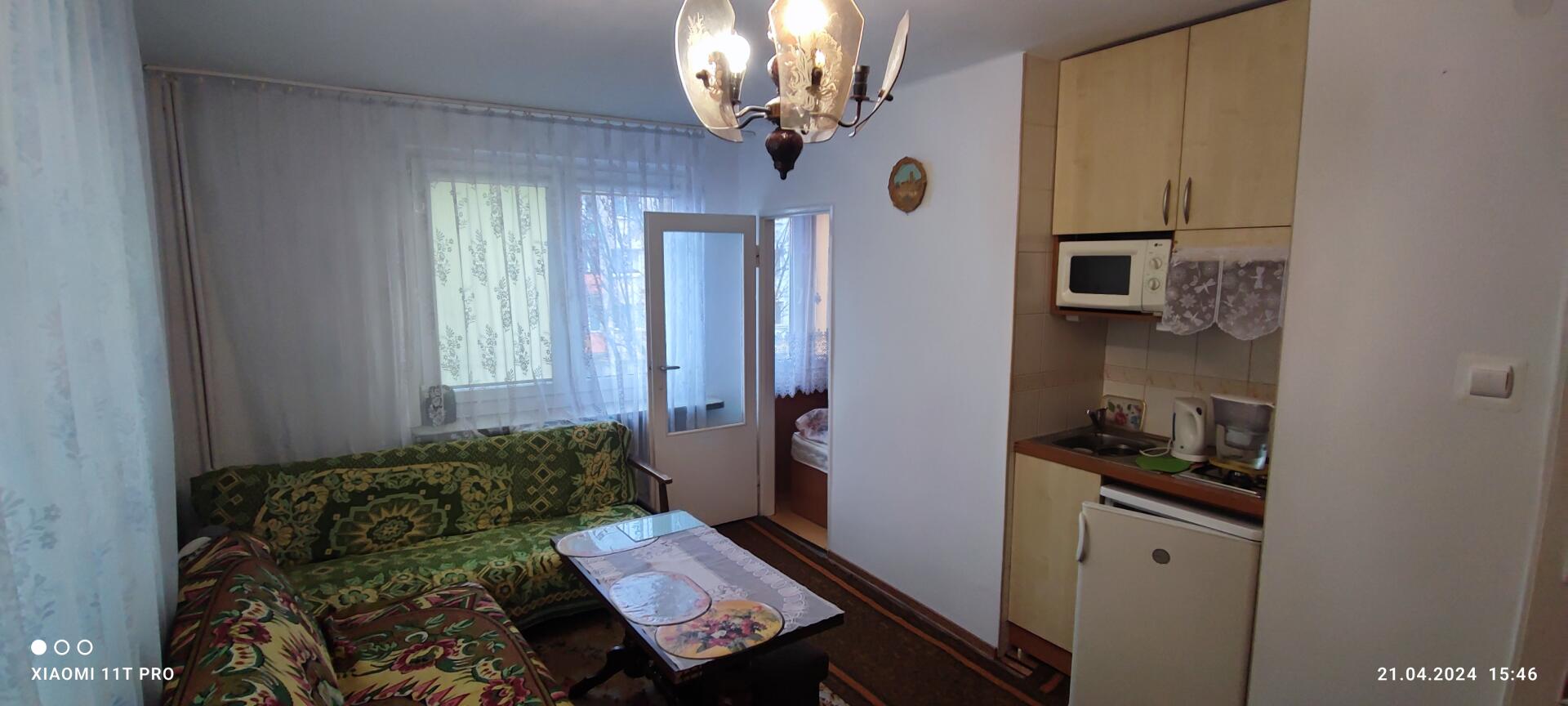 Mieszkanie składa się z przedpokoju, łazienki /wc prysznic pralka umywalka /, pokoju połączonego z aneksem kuchennym oraz oddzielną sypialnią.